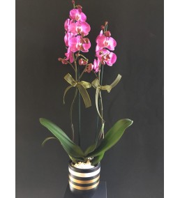 siyah çizgili vazoda mor orkide